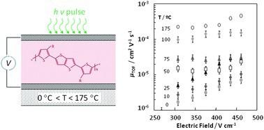 The class of liquid-crystalline semiconducting polymers based on poly(2,5-bis(3-alkylthiophen-2-yl)thieno[3,2-b]thiophene) recently has attracted significant interest in the field of organic electronics, predominantly due to their promising performance in field-effect transistor (FET) structures with device mobilities reaching—if not exceeding—those of amorphous silicon architectures. Less is known, however, about the bulk charge-transport properties of these interesting macromolecules. We therefore conducted time-of-flight (TOF) photoconductivity measurements on one particular material of this class of organic semiconductors—i.e. poly(2,5-bis(3-dodecylthiophen-2-yl)thieno[3,2-b]thiophene), pBTTT-C12—and attempted to correlate the electronic bulk properties of this polymer with its microstructural development with temperature. The effect of annealing was also investigated.