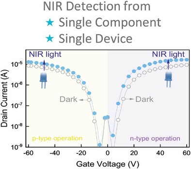 Solution-processed high-performing ambipolar organic phototransistors (OPTs) can enable low-cost integrated circuits. Here, a heteroatom engineering approach to modify the electron affinity of a low band gap diketopyrrolopyrole (DPP) co-polymer, resulting in well-balanced charge transport, a more preferential edge-on orientation and higher crystallinity, is demonstrated. Changing the comonomer heteroatom from sulfur (benzothiadiazole (BT)) to oxygen (benzooxadiazole (BO)) leads to an increased electron affinity and introduces higher ambipolarity. Organic thin film transistors fabricated from the novel PDPP-BO exhibit charge carrier mobility of 0.6 and 0.3 cm2 Vs⁻1 for electrons and holes, respectively. Due to the high sensitivity of the PDPP-based material and the balanced transport in PDPP-BO, its application as an NIR detector in an OPT architecture is presented. By maintaining a high on/off ratio (9 × 104), ambipolar OPTs are shown with photoresponsivity of 69 and 99 A W⁻1 and specific detectivity of 8 × 107 for the p-type operation and 4 × 109 Jones for the n-type regime. The high symmetric NIR-ambipolar OPTs are also evaluated as ambipolar photo-inverters, and show a 46% gain enhancement under illumination.
