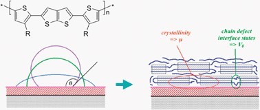 Depositing a fused-ring thieno-thiophene polymer on different self-assembled monolayers indicates that varying the SAM surface energy changes the FET mobility and turn-on voltage by varying polymer crystallinity at the buried interface. © The Royal Society of Chemistry.
