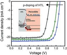 p-Doping of organic hole transport layers in p-i-n perovskite solar cells: correlating open-circuit voltage and photoluminescence quenching