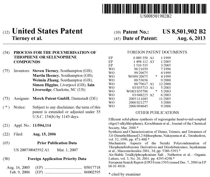 Tierney, Steven; Heeney, Martin; Zhang, Weimin; Higgins, Simon; Liversedge, Iain
