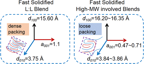 Solution-processed plastic semiconductors have garnered significant attention recently due to their ease fabrication and diverse optoelectronic functionalities, positioning them as promising contenders for the next generation of semiconductors. However, comprehending the molecular ordering in polymer semiconductor blends during solution processing remains a captivating challenge. In this study, we chose poly(3-hexylthiophene-2,5-diyl) (P3HT) and poly(3-hexylselenophene-2,5-diyl) (P3HS) blends as the model system and examined the molecular ordering of blends with low molecular weights (below the entanglement) and high molecular weights (above the entanglement). By employing a combination of structural analysis, spectroscopic techniques, and theoretical modeling, valuable insight regarding the arrangement of molecules in three dimensions within P3HT/P3HS blends of varying molecular weights have been acquired. Through these analyses, we establish a comprehensive relationship between molecular weight, molecular ordering, and exciton coherence in polymer–polymer blends.