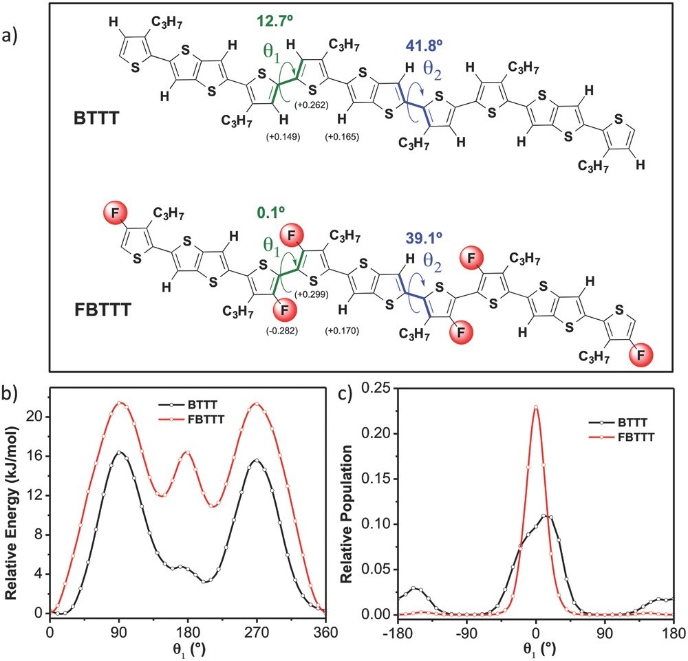 The synthesis of a novel 3,3′-difluoro-4,4′-dihexadecyl-2,2′-bithiophene monomer and its copolymerization with thieno[3,2-b]thiophene to afford the fluorinated analogue of the well-known poly(2,5-bis(3-alkylthiophen-2-yl)thieno[3,2-b]-thiophene) (PBTTT) polymer is reported. Fluorination is found to have a significant influence on the physical properties of the polymer, enhancing aggregation in solution and increasing melting point by over 100 °C compared to nonfluorinated polymer. On the basis of DFT calculations these observations are attributed to inter and intramolecular S…F interactions. As a consequence, the fluorinated polymer PFBTTT exhibits a fourfold increase in charge carrier mobility compared to the nonfluorinated polymer and excellent ambient stability for a nonencapsulated transistor device.